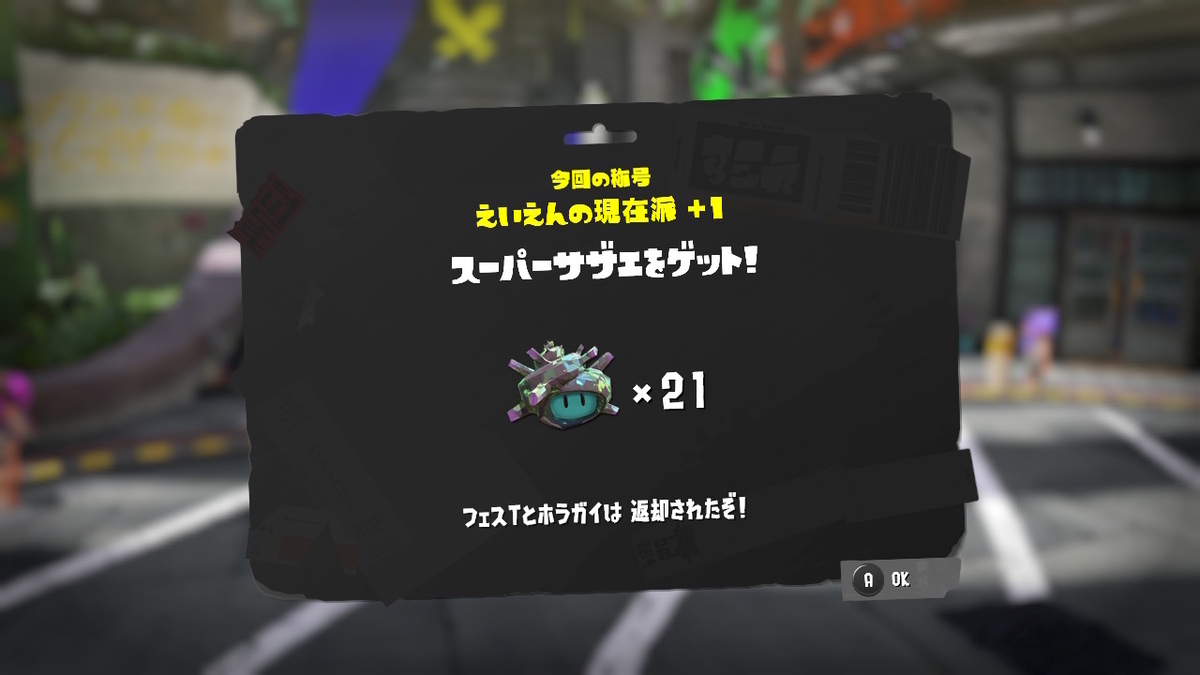 あ。ちなみに、スーパーサザエは21個ゲット。